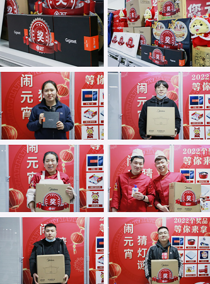 元宵節(jié)當(dāng)天在綜合樓一樓,公司準(zhǔn)備了豐富多彩的謎面舉行猜燈謎贏大獎活動?,F(xiàn)場大家紛紛駐足猜謎、踴躍參與、凝神思索,猜中3條燈謎即可進(jìn)行抽獎。大家都暢游在燈謎的海洋中,動動手和腦,2022個禮品帶回家!
