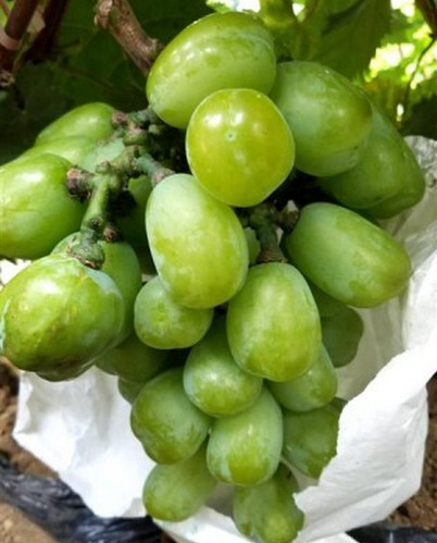 超級特大無核葡萄:8月份成熟,成熟后可在樹上掛到下霜,果粒特大,粒重35~40克,無核,果面亮麗,外觀美麗漂亮,可以剝皮吃,味道清香、肉脆、果汁多,成熟時間和巨峰同期,掛樹時間特別長,極耐貯運(yùn),早果豐產(chǎn),極易成花,極易栽培,特抗病,豐產(chǎn)、穩(wěn)產(chǎn),在國內(nèi)栽培表現(xiàn)果實(shí)更大,可達(dá)到50克以上(小雞蛋一樣),果肉細(xì)滑有彈性,吃起來有果凍的感覺,口感絕佳,該品種的試種成功,把我國特大粒葡萄品種徹底打垮,缺陷就是在山東、河南顏色是黃綠色或者淺粉紅色(著色沒有原照那么紅),果實(shí)早采的情況下和陽光玫瑰的顏色差不多,加上一層果粉,很有高級之感,如果你有遠(yuǎn)見,快發(fā)展葡萄果王,大粒葡萄品種沒有超過葡萄果王的。