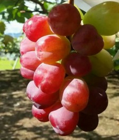 超級特大無核葡萄:8月份成熟,成熟后可在樹上掛到下霜,果粒特大,粒重35~40克,無核,果面亮麗,外觀美麗漂亮,可以剝皮吃,味道清香、肉脆、果汁多,成熟時間和巨峰同期,掛樹時間特別長,極耐貯運(yùn),早果豐產(chǎn),極易成花,極易栽培,特抗病,豐產(chǎn)、穩(wěn)產(chǎn),在國內(nèi)栽培表現(xiàn)果實(shí)更大,可達(dá)到50克以上(小雞蛋一樣),果肉細(xì)滑有彈性,吃起來有果凍的感覺,口感絕佳,該品種的試種成功,把我國特大粒葡萄品種徹底打垮,缺陷就是在山東、河南顏色是黃綠色或者淺粉紅色(著色沒有原照那么紅),果實(shí)早采的情況下和陽光玫瑰的顏色差不多,加上一層果粉,很有高級之感,如果你有遠(yuǎn)見,快發(fā)展葡萄果王,大粒葡萄品種沒有超過葡萄果王的。